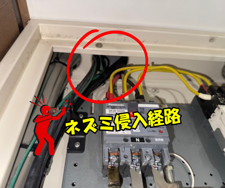 小さな隙間から侵入したネズミが内部を荒らし、電気系統に影響を与えていたのです。